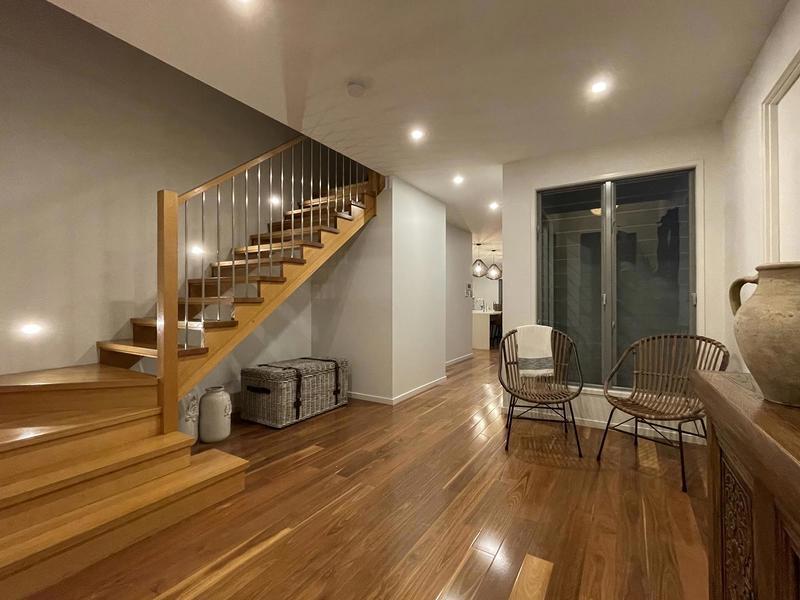Stained timber staircase adding character to the home's aesthetic